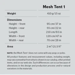 - Fabric: 15D lightweight mesh (canopy) / 40D Nylon 6.6 (floor)