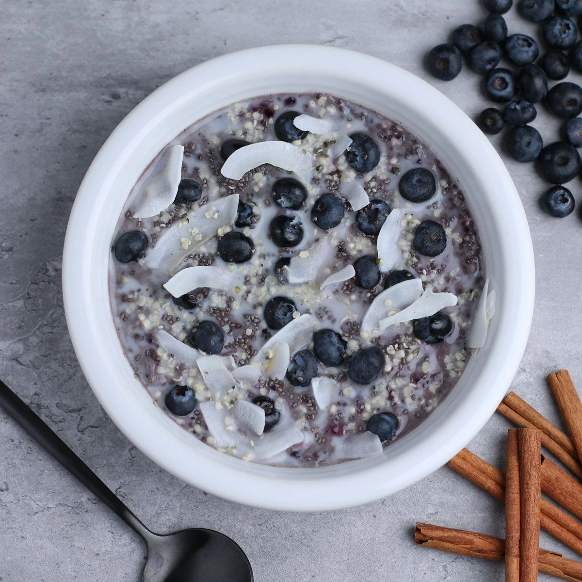 - Ingredients: Buckwheat, Hulled Hemp Seeds, Dried Blueberries, Raw Sugar, Chia Seeds, Coconut Milk Powder (Coconut, Non-GMO Tapioca), Shredded Coconut, Coconut Flakes, Sea Salt, Cinnamon