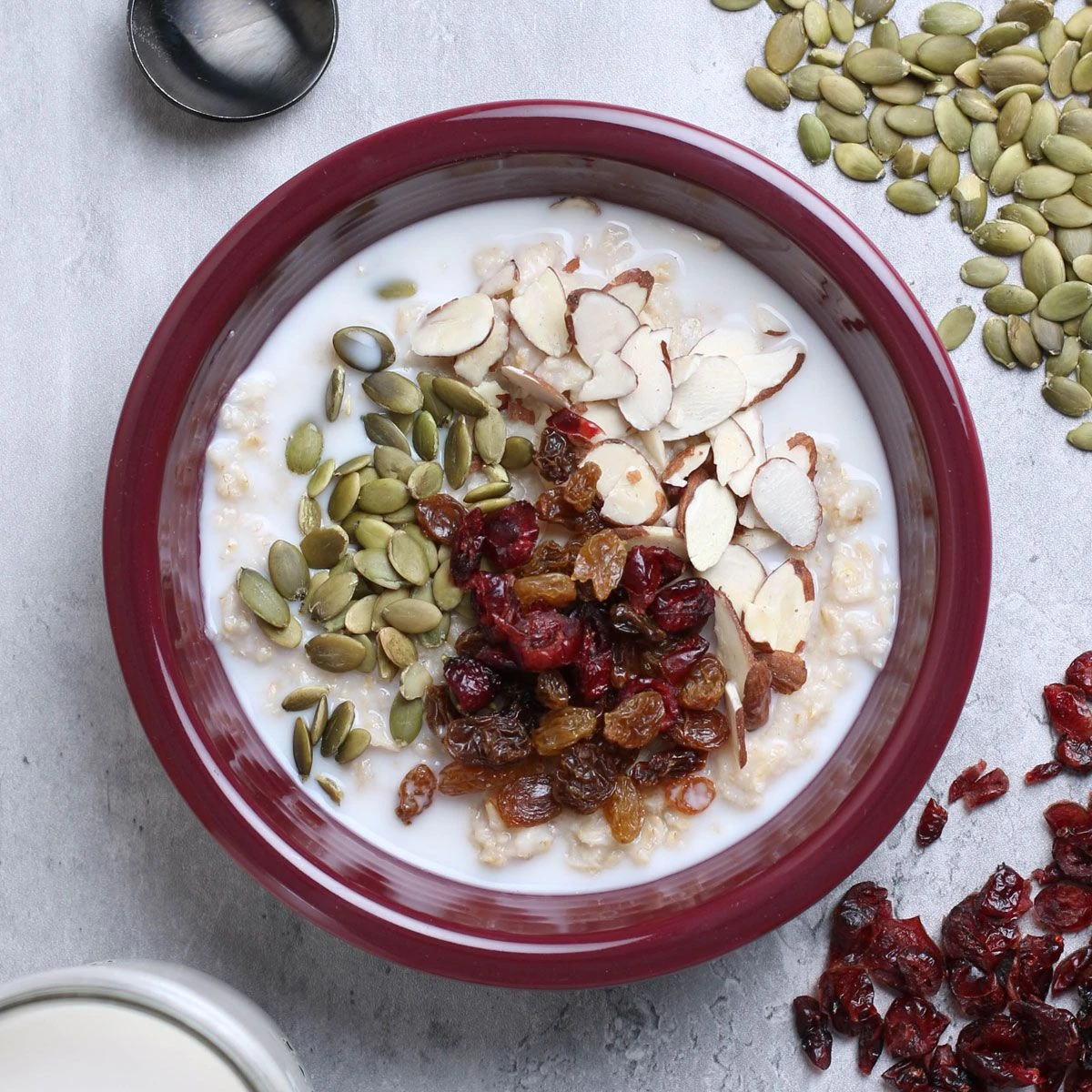 - Ingredients: Gluten-Free Rolled Oats*. Powdered Whole Milk. Dried Cranberries (Cranberries. Sugar. Sunflower Oil). Pumpkin Seeds. Almonds. Butter Powder (Sweet Cream. Salt. Annato Color. Non Fat Milk Solids). Raw Sugar*. Sea Salt. Cardamom.
