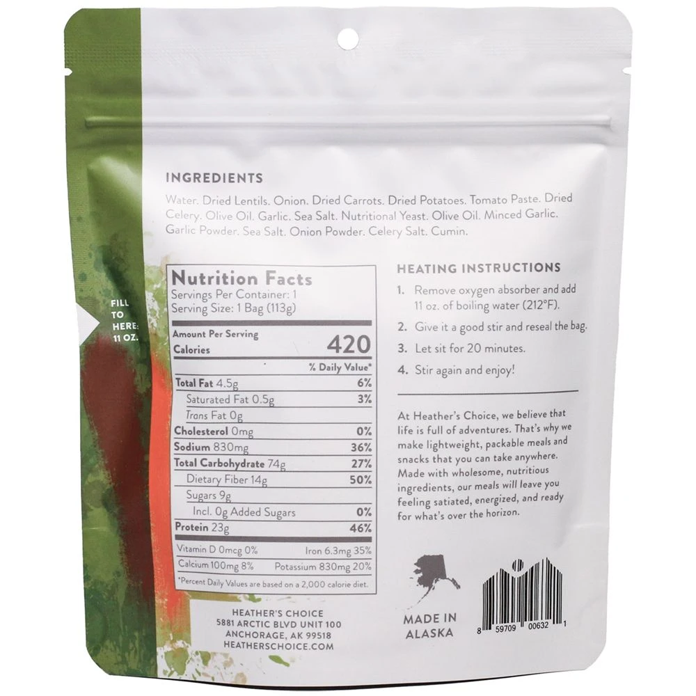 Heather lived off of lentil soup in college, so this meal deserved a spot on the adventure menu as a nourishing, vegetarian friendly backpacking meal. It’s loaded with protein and vegetables, which we all need more of out there on the trail. One of Heather’s Choice field testers proclaimed, “This meal changed my life! It’s the best backpacking meal I’ve ever had.” They’ll take that as a solid endorsement.