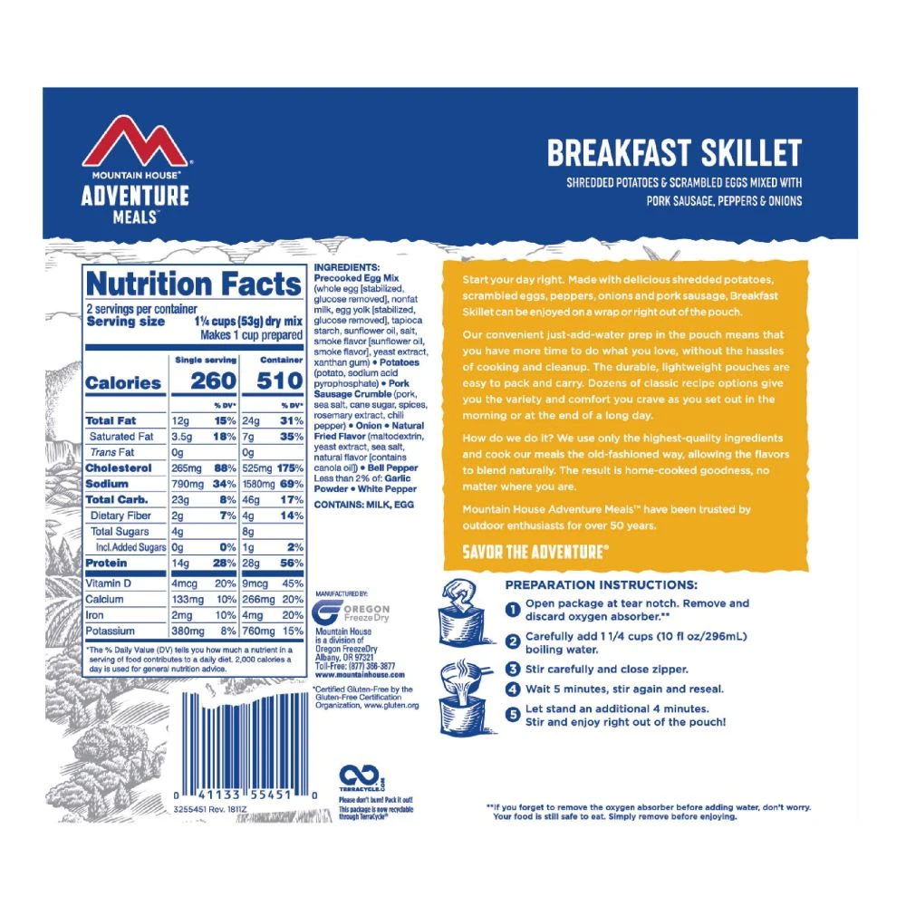 Filling hash browns, savory sausage, tasty veggies and scrambled eggs all team up to make the legendary Mountain House Breakfast Skillet. Bursting with flavor and protein, it’s no wonder this is one of our most popular breakfast items for fueling explorers everywhere.