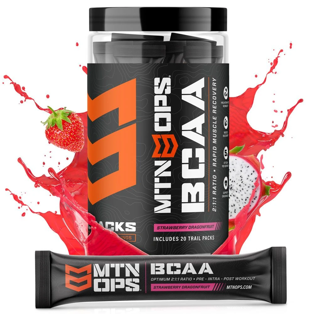 MTN OPS BCAAâ„¢ is a branch chain amino acid formula to aid in lean muscle growth and recovery – before, during and even after exercising. Designed with the tried and true BCAA ratio of 2:1:1 of Leucine, Isoleucine and Valine. This scientifically proven ratio gives your muscles the optimum levels needed to aid in protein synthesis which helps your body maintain existing muscle and promote rapid muscle growth while decreasing recovery time. There are no shortcuts when it comes to recovery and building. Give your body the best with the MTN OPS BCAAâ„¢.