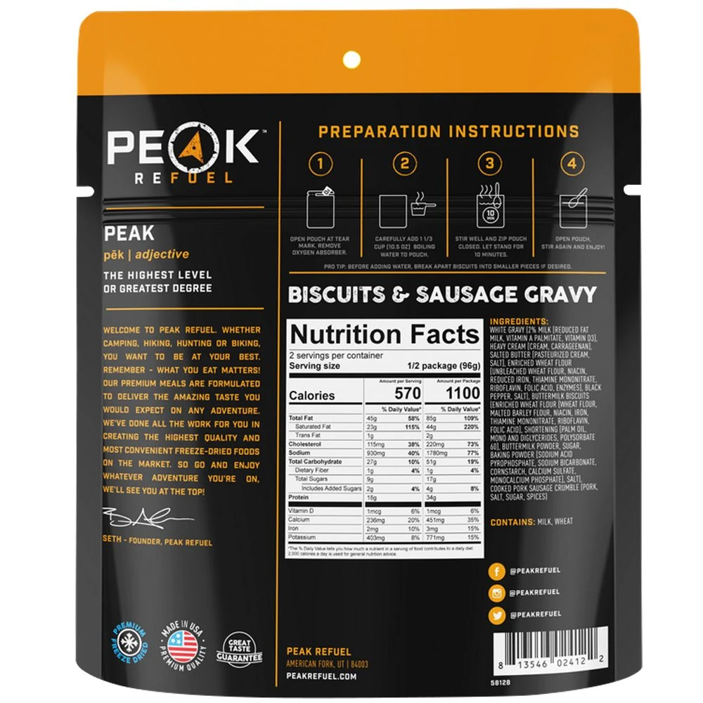 Flaky biscuits, real sausage, and delicious gravy? Say no more! Peak’s Biscuits & Sausage Gravy is now the new standard of hot breakfasts in the backcountry. 34g of protein packed in a restaurant quality breakfast that will leave you fueled for anything – it doesn’t get much better than that.
