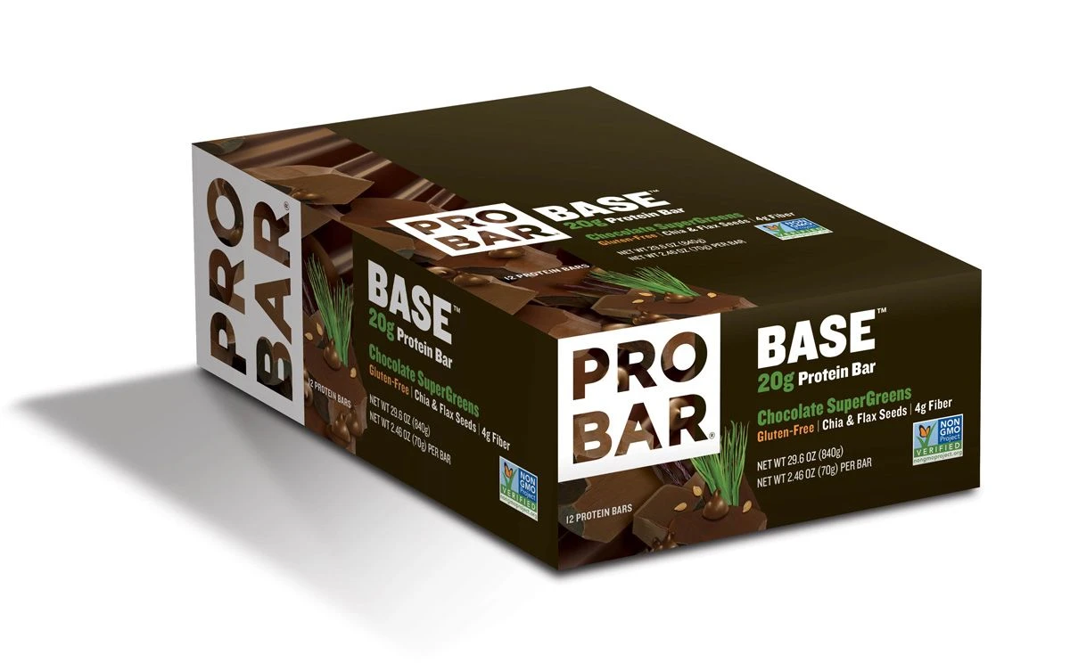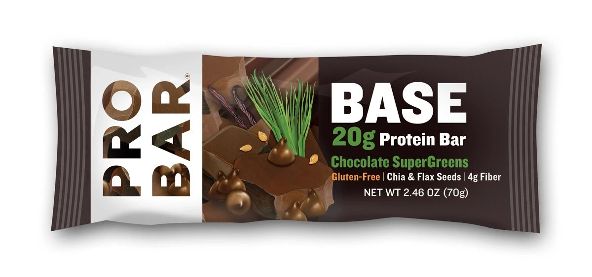 Chocolate and greens together? Crazy right? The PROBAR Base Chocolate Supergreens Protein Bar will soon be your favorite go-to protein bar. It contains chai, flaxseed and a gluten free greens blend of barley grass, wheat grass and alfalfa.