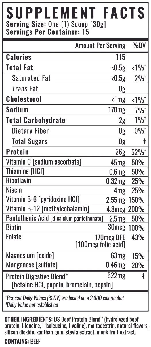 - 26g of Grass-Fed Beef Protein